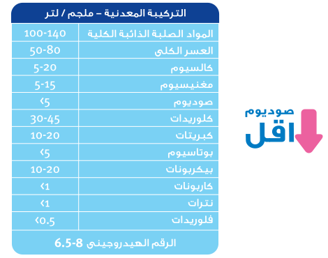 الأملاح الذائبة الكلية (TDS): من 100 إلى 120 ملغ/لتر